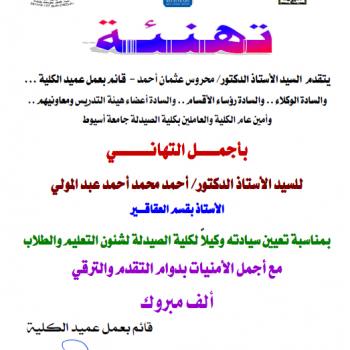 سوف يعقد بمشيئة الله تعالي السيمينار الثالث للأنسة الماجستير/ أمل امام عبدالغنى – المسجلة (من الخارج) لنيل درجة دكتوراه الفلسفة في العلوم الصيدلية (صيدلانيات) ، وذلك يوم الأحد الموافق 18…