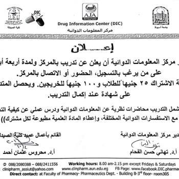 سوف يعقد بمشيئة الله تعالي اجتماع مجلس قسم العقاقير بكلية الصيدلة رقم (34) وذلك يوم الاثنين الموافق 10/10/2016م الساعة…
