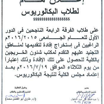 سوف يعقد بمشيئة الله تعالي اجتماع لجنة شئون التعليم والطلاب بكلية الصيدلة يوم الخميس الموافق 14/7/2016م الساعة العاشرة…