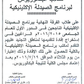 سوف يعقد بمشيئة الله تعالي اجتماع لجنة الدراسات العليا والبحوث بكلية الصيدلة يوم الخميس الموافق 14/7/2016م الساعة الحادية…