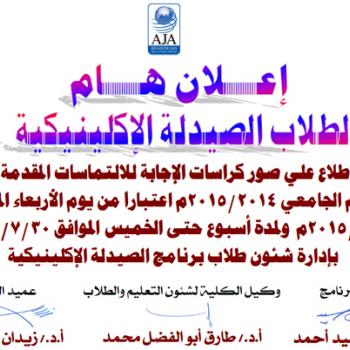 سوف يعقد بمشيئة الله تعالي اجتماع مجلس قسم العقاقير بكلية الصيدلة رقم (14) وذلك يوم الثلاثاء الموافق 21/7/2015م الساعة…