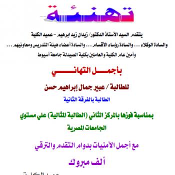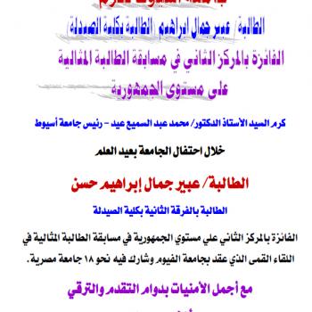 كرم السيد الأستاذ الدكتور/ محمد عبد السميع عيد - رئيس جامعة أسيوط - خلال احتفال الجامعة بعيد العلم الطالبة/ عبير جمال…
