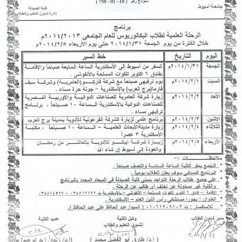 بدأت الرحله العلمية لطلاب البكالوريوس للعام الجامعى 2013/2014 فى الأسبوع الثانى من أجازة نصف العام ولمدة ستة أيام وذلك من يوم الجمعة…