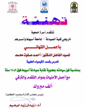 كلية الصيدلة تتقدم بخالص التهنئة للسيد الدكتور/ علاء عرفات خليفة بمناسبة فوز سيادته بجائزة أحسن بحث علي مستوي أقسام الكلية