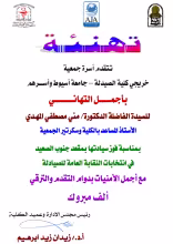 تهنئ كلية الصيدلة أبنائها الطلاب الحاصلين علي المراكز الأولي علي مستوي الجامعة في المهرجان الخامس للأنشطة الطلابية الذي أقيم بكلية الزراعة يوم 2/3/2015م.
