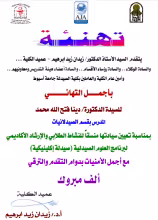 كلية الصيدلة تتقدم بخالص التهنئة للسيدة الدكتورة/ دينا فتح الله محمد بمناسبة تعيين سيادتها منسقاً للنشاط الطلابي والإرشاد الأكاديمي لبرنامج العلوم الصيدلية (صيدلة إكلينيكية).