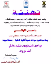 كلية الصيدلة تتقدم بخالص التهنئة للسيد الأستاذ الدكتور/ حماد مصطفي عزب بمناسبة تعيين سيادته عميداً لكلية الحقوق - جامعة أسيوط.