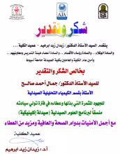 كلية الصيدلة تتقدم بخالص الشكر والتقدير للسيد الأستاذ الدكتور/ جمال أحمد صالح للجهود المثمرة التي بذلها وعطاءه في فترة تولي سيادته منسقاً لبرنامج العلوم الصيدلية (صيدلة إكلينيكية).