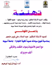 كلية الصيدلة تتقدم بخالص التهنئة للسيد الأستاذ الدكتور/ عبد السلام علي نوير منصور بمناسبة تعيين سيادته عميداً لكلية التجارة - جامعة أسيوط.