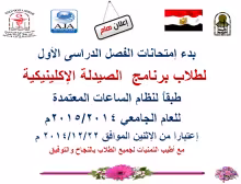 بدء امتحانات الفصل الدراسي الأول لطلاب برنامج الصيدلة الإكلينيكية للعام الجامعي 2014/2015م.