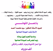 كلية الصيدلة تتقدم بخالص التهنئة للسيد الأستاذ الدكتور/ سيد محمد أحمد بمناسبة تجديد تعيين سيادته رئيساً لمجلس قسم الصيدلة الصناعية.