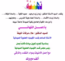 كلية الصيدلة تتقدم بخالص التهنئة للسيد الدكتور/ علاء عرفات خليفة بمناسبة تجديد تعيين سيادته قائماً بعمل رئيس مجلس قسم الكيمياء العضوية الصيدلية.