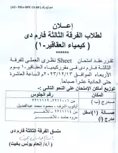 إعلان لطلاب الفرقة الثالثة فارم دي (كيمياء العقاقير-1)