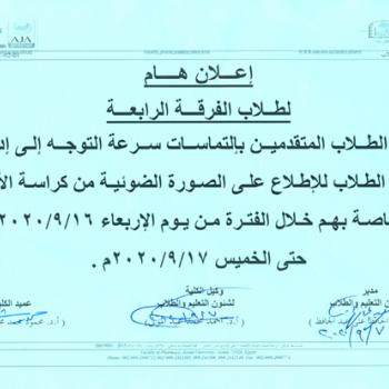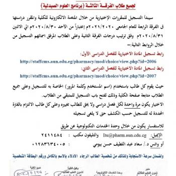 سوف يعقد بمشيئة الله تعالي اجتماع لجنة شئون التعليم والطلاب بكلية الصيدلة يوم الأحد الموافق 13-9-2020م الساعة الحادية…