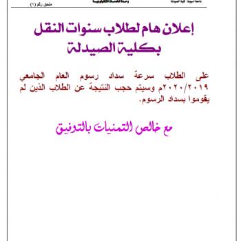 سوف يعقد بمشيئة الله تعالي اجتماع مجلس قسم الكيمياء العضوية الصيدلية بكلية الصيدلة رقم (416) وذلك يوم الثلاثاء الموافق 7-7-2020م الساعة العاشرة صباحاً…