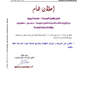 وافق مجلس كلية الصيدلة بجلسته رقم (687) المنعقدة بتاريخ 18/6/2020م علي إضافة السيد…