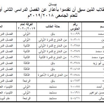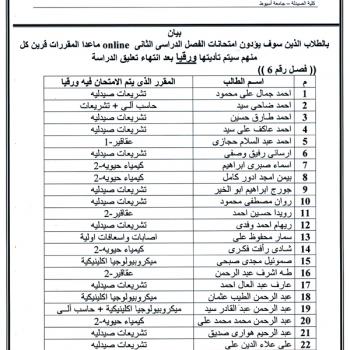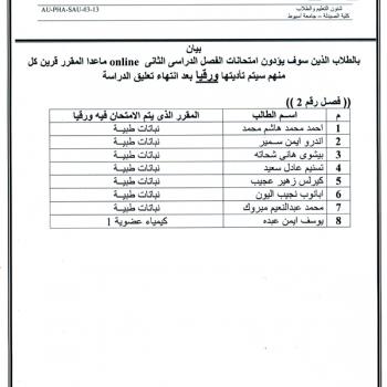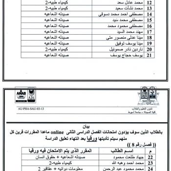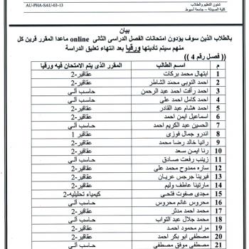 علي الطلاب الموضح أسمائهم كالتالي التواصل مع الكلية لتحديد كيفية أداء الإمتحانات.