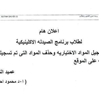 سوف يعقد بمشيئة الله تعالي اجتماع مجلس قسم الصيدلة الصناعية بكلية الصيدلة رقم (459) وذلك يوم الأحد الموافق 9-2-2020م…