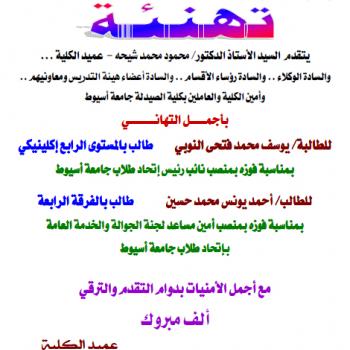أسرة كلية الصيدلة تهنئ الطلاب الفائزين بمناصب في إتحاد طلاب جامعة أسيوط.