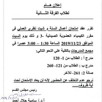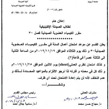 سوف يعقد بمشيئة الله تعالي اجتماع مجلس قسم الصيدلانيات بكلية الصيدلة رقم (465) وذلك يوم الثلاثاء الموافق 29-10-2019م الساعة التاسعة…