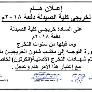 وافق مجلس كلية الصيدلة بجلسته رقم (659) المنعقدة بتاريخ 25/9/2018م علي قيد…