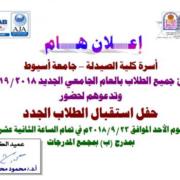 سوف يعقد بمشيئة الله تعالي اجتماع لجنة العلاقات الثقافية والخارجية بكلية الصيدلة يوم الأحد الموافق 16-9-2018م الساعة الثانية عشر ظهراً بمكتب السيد…