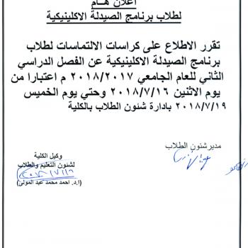 سوف يعقد بمشيئة الله تعالي اجتماع لجنة الدراسات العليا والبحوث بكلية الصيدلة يوم الأحد الموافق 15-7-2018م الساعة الحادية عشر…