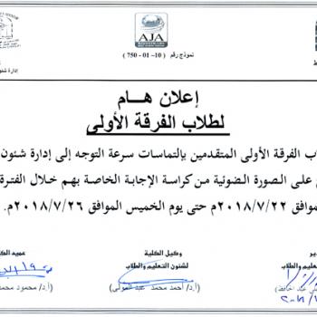 سوف يعقد بمشيئة الله تعالي اجتماع مجلس كلية الصيدلة يوم الأحد الموافق 22-7-2018م الساعة الحادية عشر صباحاً وذلك بمقر مجلس…