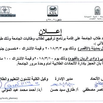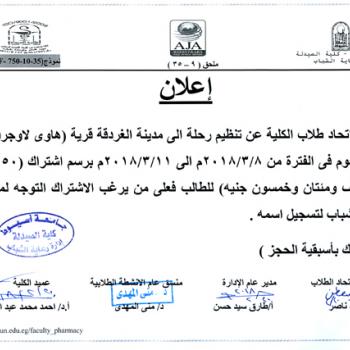سوف يعقد بمشيئة الله تعالي اجتماع اللجنة الإدارية العليا لبرنامج الصيدلة الإكلينيكية بكلية الصيدلة وذلك يوم الاثنين الموافق…