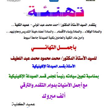 سوف يعقد بمشيئة الله تعالي اجتماع اللجنة الإدارية العليا لبرنامج الصيدلة الإكلينيكية بكلية الصيدلة وذلك يوم الاثنين الموافق…