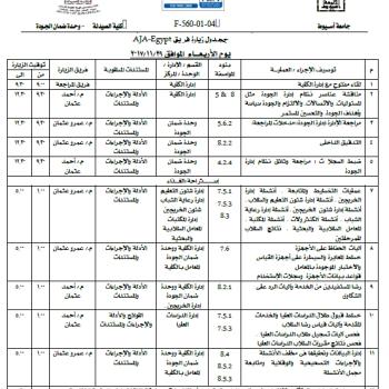سيتم بمشيئة الله تعالي زيارة فريق شركة AJA-Egypt لإجراء المراجعة السنوية لنظام الأيزو 9001/2008 وذلك يوم الأربعاء الموافق 29…