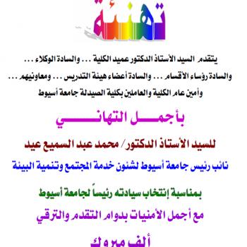 وافق مجلس كلية الصيدلة بجلسته رقم (596) المنعقدة بتاريخ 24/7/2013م على تعيين السيدة الدكتورة/ إيمان سيد أحمد السيد خلاف - المدرس…