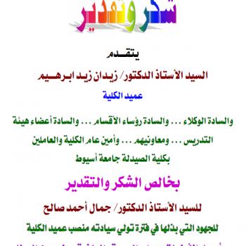 وافق مجلس كلية الصيدلة بجلسته رقم (595) المنعقدة بتاريخ 25/6/2013م على إعتذار السيدة الصيدلانية/ نسمة مصطفى محمد كمال - المدرس المساعد…