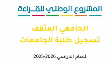 استبيان "الجامعي المثقف" لتسجيل طلاب الجامعات للعام الدراسي 2025–2026 10 ديسمبر 2025 👇المشروع الوطني للقراءةالجامعي المثقفتسجيل طلبة الجامعاتللعام الدراسي 2025-2026