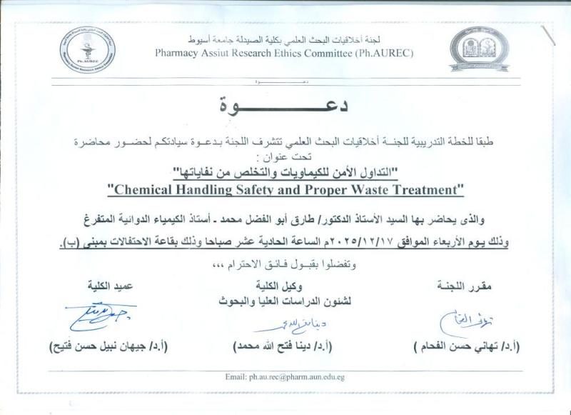 محاضرة بعنوان التداول الآمن للكيماويات والتخلص من نفاياتها