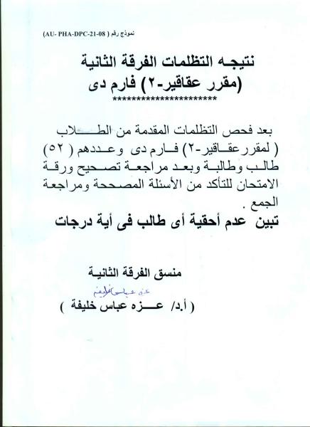 نتيجة تظلمات عقاقير-2 الفرقة الثانية فارم دى