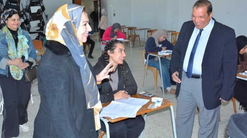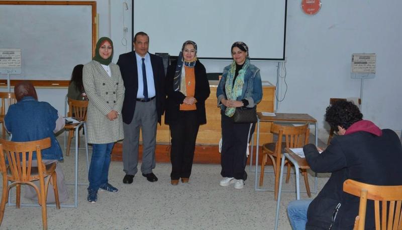 تحت رعاية السيد الأستاذ الدكتور / أحمد المنشاوى – رئيس الجامعة و السيد الأستاذ الدكتور/ أحمد محمد عبدالمولى - نائب رئيس الجامعة لشئون التعليم والطلاب ، قامت السيدة الأستاذ الدكتور / جيهان نبيل فتيح – عميد الكلية يرافقها السيد الأستاذ الدكتور / حسن رفعت حسن – وكيل الكلية لشئون التعليم والطلاب ، والسيدة الدكتور / نرمين السيد العراقى – القائم بأعمال رئيس قسم الصيدلانيات وعضو كنترول ، بعمل جولة تفقدية لمتابعة سير و إنتظام إمتحانات الفصل الدراسى الأول للعام الجامعى 2025/2026م حيث إطمئنت سيادتها على الإلتزام بكافة التعليمات المنظمة لعملية الإمتحانات