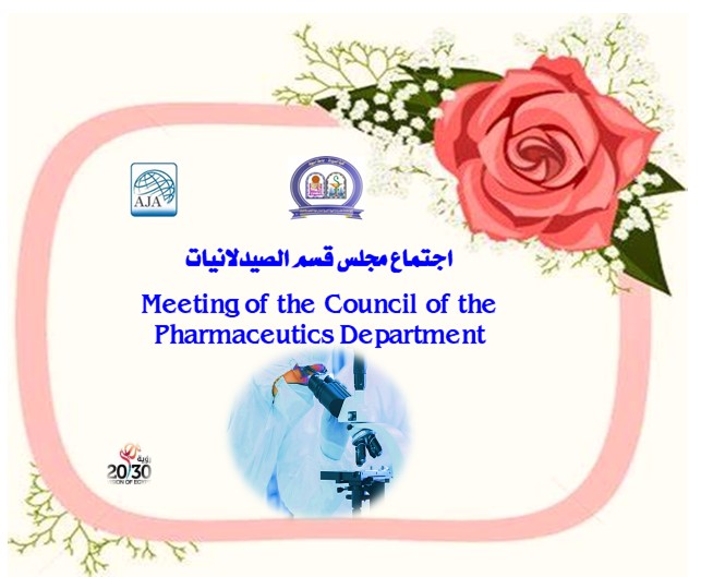 اجتماع مجلس قسم الصيدلانيات بكلية الصيدلة وذلك يوم الأثنين الموافق 5 يناير 2026 3 يناير 2026 سوف يعقد بمشيئة الله تعالي اجتماع مجلس قسم الصيدلانيات بكلية الصيدلة رقم (546) وذلك يوم الأثنين الموافق 5 يناير 2026 الساعة الحادية عشر صباحاًبقاعة مجلس القسم بالدور الثالث لمناقشة الموضوعات التى سنوافيكم بها فى حينه