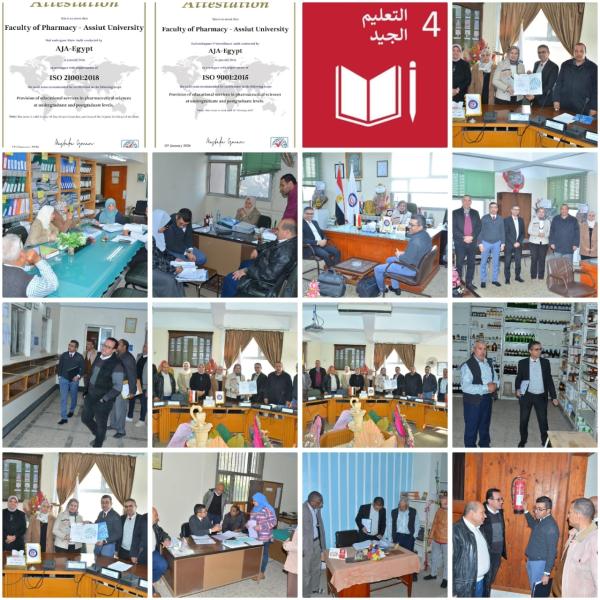استقبلت كلية الصيدلة يوم الإثنين الموافق 12 يناير 2026 وفد شركة (AJA – Egypt)، وذلك لإجراء زيارة المتابعة السنوية لتجديد شهادة المواصفة الدولية ISO 9001:2015 الخاصة بنظام إدارة الجودة. كما شملت الزيارة تقييم الكلية لاستيفاء متطلبات المواصفة الدولية ISO 21001:2018 الخاصة بنظام إدارة المؤسسات التعليمية، والتي تقدمت الكلية للحصول عليها لأول مرة، لما تمثله من أداة فعّالة تُظهر التزام المؤسسات التعليمية بتطبيق أفضل ممارسات الإدارة التعليمية.
