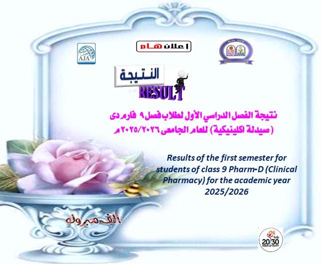 نتيجة الفصل الدراسي الأول لطلاب فصل 9 فارم دى (صيدلة اكلينيكية) للعام الجامعى 2025/2026م 2 فبراير 2026 اضغط👇لينك الدخول