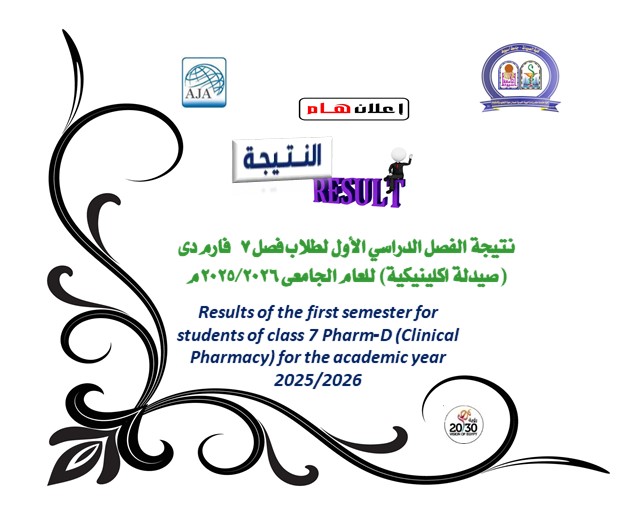 نتيجة الفصل الدراسي الأول لطلاب فصل 7 فارم دى (صيدلة اكلينيكية) للعام الجامعى 2025/2026م 3 فبراير 2026 اضغط👇لينك الدخول