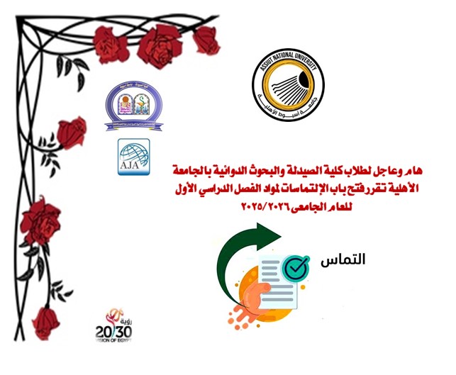 هام وعاجل لطلاب كلية الصيدلة والبحوث الدوائية بالجامعة الأهلية تقرر فتح باب الإلتماسات لمواد الفصل الدراسي الأول للعام الجامعى 2025/2026 3 فبراير 2026