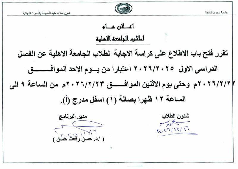 هام لطلاب الجامعة الأهلية فتح باب الاطلاع على كراسات الإجابة
