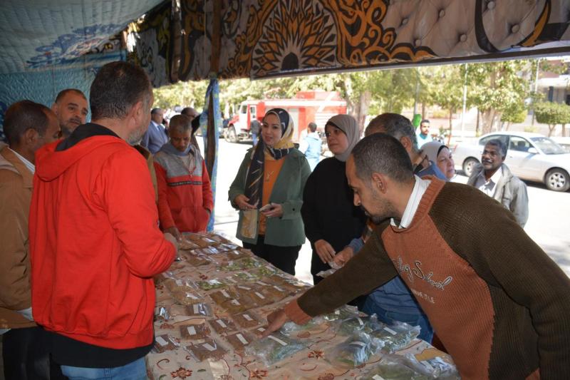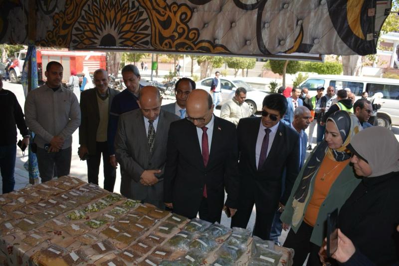 جولة معالى رئيس الجامعة لجناح كلية الصيدلة المشارك في معرض جامعة أسيوط ( أهلاً بالعيد ) المشاركة فى المعرض بأعشاب طبية من منتجات مزرعة قسم العقاقير بكلية الصيدلة