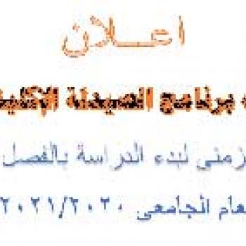 اعـــــــلان لطلاب برنامج الصيدلة الإكلينيكية الجدول الزمنى لبدء الدراسة بالفصل الصيفى للعام الجامعى 2020/2021م