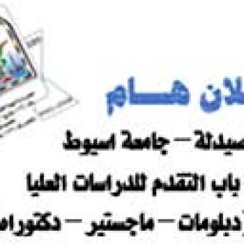 إعــــــلان هـــام تعلن كلية الصيدلة – جامعة اسيوط عن فتح باب التقدم للدراسات العليا (دبلومات – ماجستير – دكتوراه)