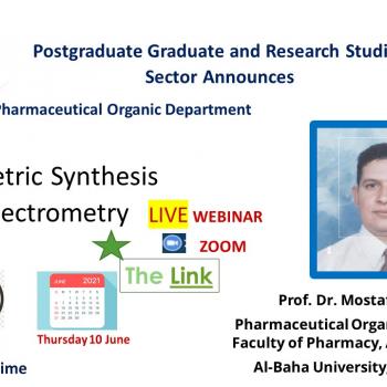 يعلن قطاع الدراسات والبحوث عن محاضرة للسيد الأستاذ الدكتور/ مصطفى حسين - الأستاذ بقسم الكيمياء العضوية - كلية الصيدلة - جامعة أسيوط جامعة الباحة السعودية