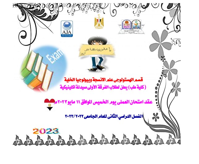 قسم الهستولوجى علم الانسجة وبيولوجيا الخلية (كلية طب) يعلن لطلاب الفرقة الأولى صيدلة اكلينيكية عقد امتحان العملى يوم الخميس الموافق 11 مايو 2023م 10 مايو 2023