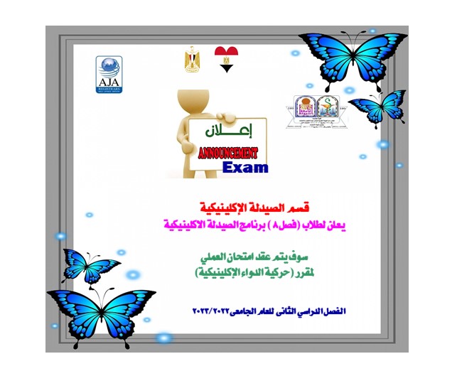 قسم الصيدلة الإكلينيكية يعلن لطلاب (فصل 8) برنامج الصيدلة الاكلينيكية سوف يتم عقد امتحان العملي لمقرر (حركية الدواء الإكلينيكية) 11 مايو 2023