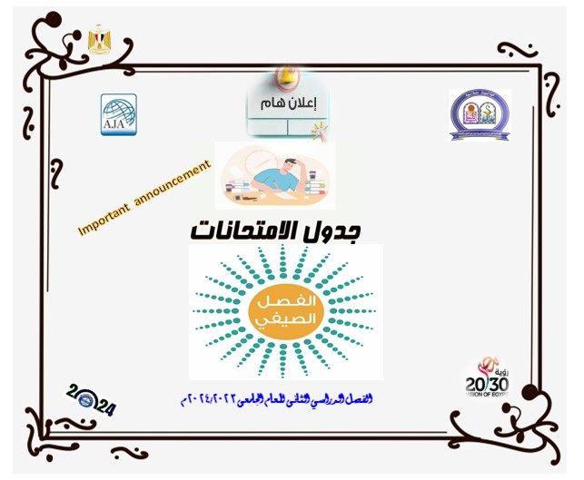 تعديل الجدول النهائي لامتحانات الفصل الصيفي لطلاب برنامج بكالوريوس الصيدلة فارم دى طبقاً لنظام الساعات المعتمدة للعام الجامعى 2023/2024 7 أغسطس 2024